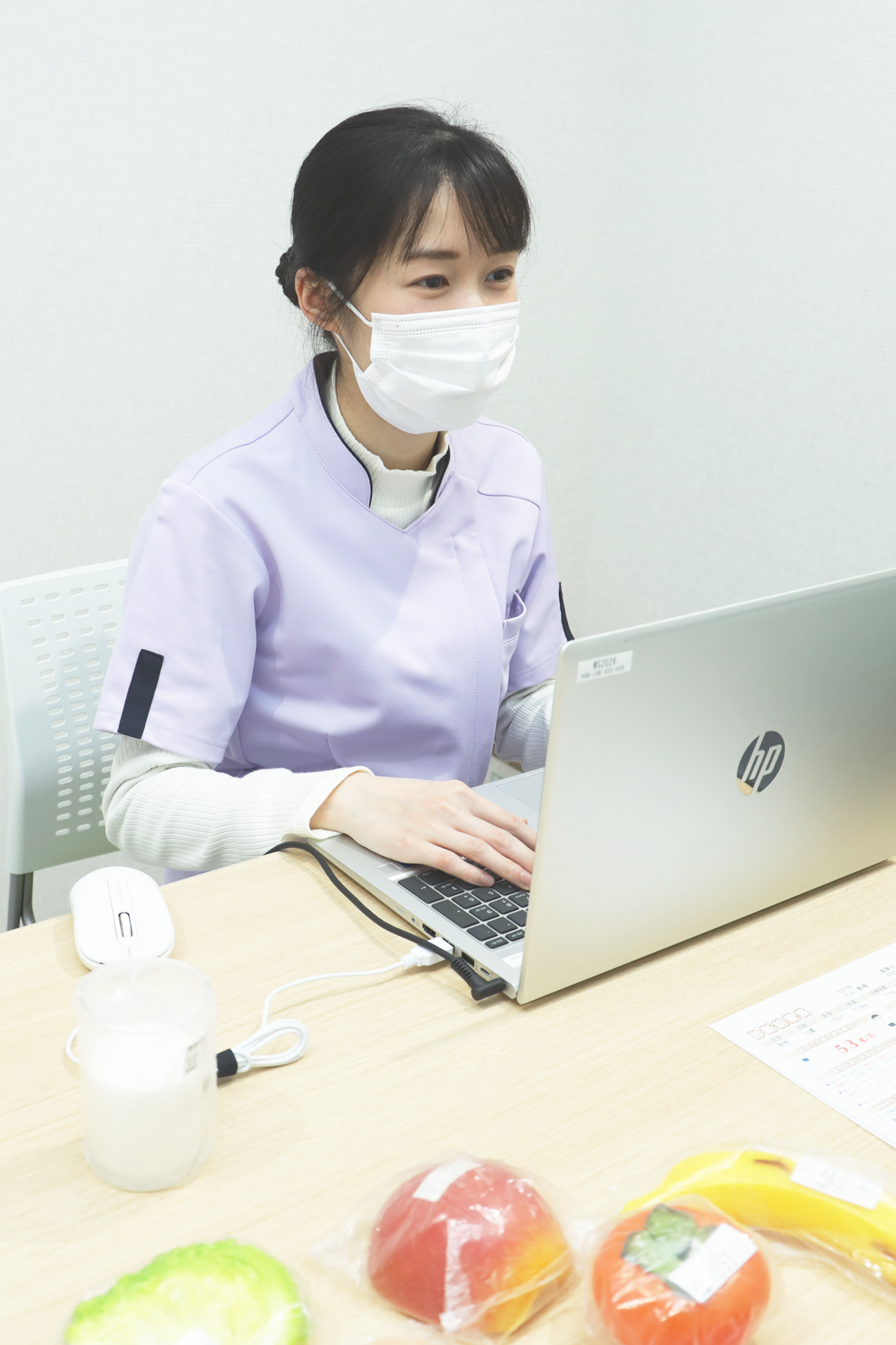 そのうえで、チーム医療に参加し、多職種とのカンファレンスや情報共有、栄養管理に関する提案を行うことで、患者さんの早期回復、医療の質向上に貢献できるよう努めています。