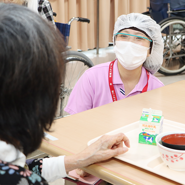 入所者さん一人ひとりに合わせた栄養管理と食事管理が中心です。